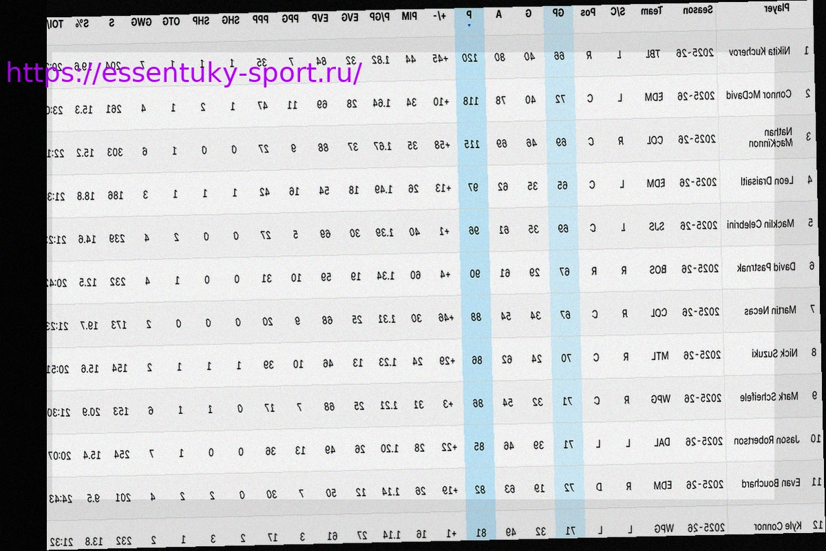 По состоянию на 28 марта 2026 года, российский форвард «Тампа-Бэй Лайтнинг» Никита Кучеров уверенно удерживает первое место в списке лучших бомбардиров текущего регулярного чемпионата Национальной хоккейной лиги (НХЛ) сезона 2025/26.