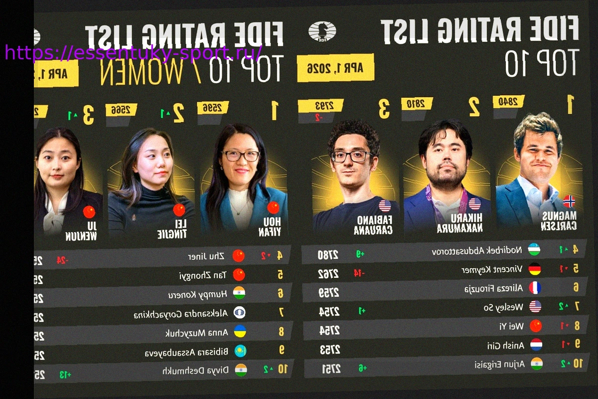 В апрельских мировых рейтингах ФИДЕ за 2026 год тройка лидеров осталась без изменений, включая Магнуса Карлсена, Хикару Накамуру и Фабиано Каруану. Винсент Каймер потерял несколько пунктов рейтинга и, как следствие, поменялся местами с Нодирбеком Абдусатторовым. Хоу Ифань по-прежнему удерживает позицию самой высокорейтинговой шахматистки в мире. Чемпион мира Гукеш Доммараджу возглавляет рейтинг игроков в категории до 20 лет, а Алуа Нурман стала новым лидером в категории юниорок.